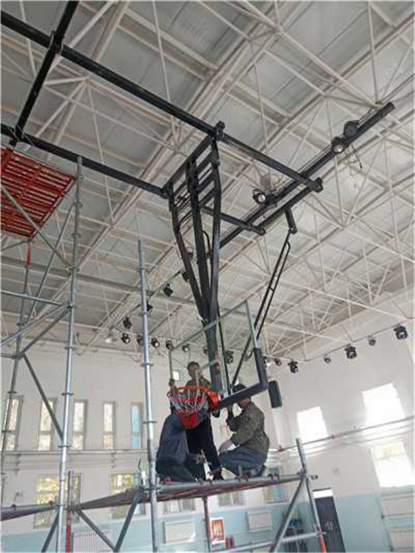 這種籃球架一般用在運(yùn)動(dòng)場(chǎng)館空間不是很大,而且場(chǎng)館房頂是鋼結(jié)構(gòu)的比較合適,不適合扣籃。