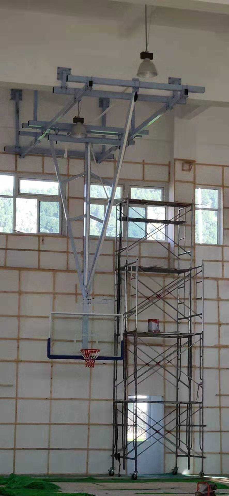 墻面懸空籃球架,懸臂式籃球架,房頂籃球架,懸空電動折疊籃球架