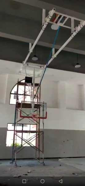 廣州學(xué)校體育館電動(dòng)懸空籃球架安裝完成