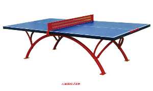 室外乒乓球臺臺面材料采用SMC片材,由2000T壓力機整體高溫模壓一次成型,臺長2740mm ,臺寬1525mm,臺高760mm;端、邊線寬度20mm;中線寬度3mm±0.5mm。臺面一般噴深藍(lán)色亞光環(huán)保漆,端、邊線和中線涂白色。球臺的支腿常用彩虹型結(jié)構(gòu),結(jié)構(gòu)穩(wěn)定,與地面牢固連接。球臺中間擋板(網(wǎng)架):采用鐵板沖壓結(jié)構(gòu),所有腿架鏈接板等采用磷化工藝,靜電粉沫噴涂處理,且產(chǎn)品涂料配方不含有毒元素,避免損害使用者健康。SMC室外乒乓球臺可長期放置室外使用,具有防風(fēng)、防雨雪、阻燃、耐老化等特點,目前政府采購的用于農(nóng)民健身工程多為此種乒乓球臺。