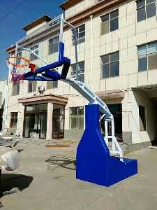 手動(dòng)液壓籃球架是較為常用的籃球架,較固定式籃球架而言手動(dòng)液壓籃球架操作方便,手動(dòng)液壓籃球架具有手控液壓裝置,籃球架可以折疊,需要移動(dòng)時(shí)手動(dòng)升降角輪,即可輕松移動(dòng); 后配重箱尺寸是2*1*0.45m,平箱占地面積較大,穩(wěn)固性較好。表面采用靜電噴塑工藝,具有防銹蝕、耐氧化、不掉漆、不退色等優(yōu)點(diǎn)。