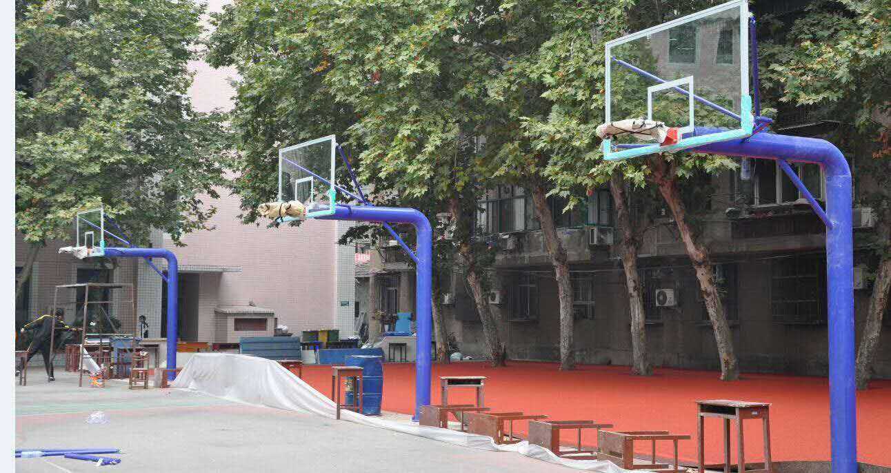 山東客戶(hù)定制165圓管籃球架安裝完成_固定式圓管籃球架