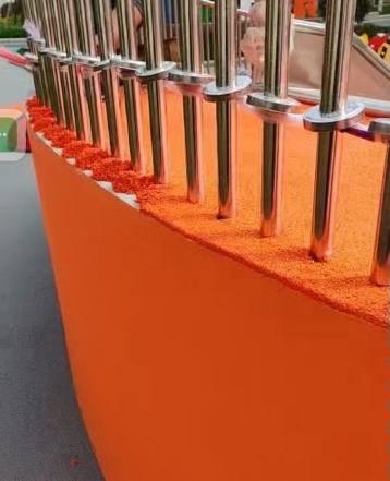- EPDM顆粒:底層用1-3mm黑色顆粒(含膠量≥20%),面層用0.5-1mm彩色顆粒(耐曬等級(jí)≥8級(jí));